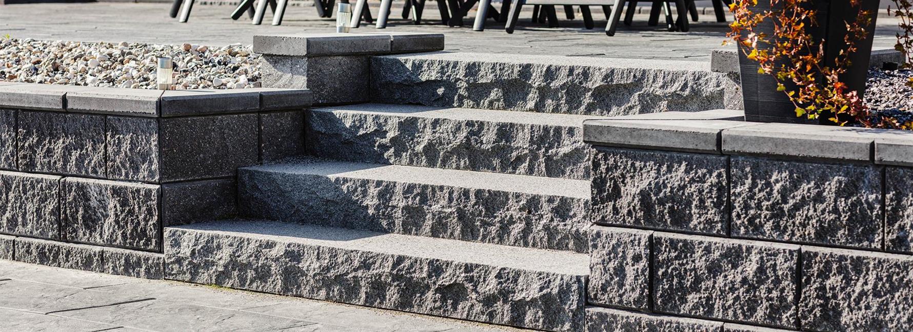 Här finns murblock för både fristående murar och stödmurar, kantstöd som ramar in gångar och planteringar, samt trappblock för att skapa stabila och tydliga trappor. Med dessa kan du forma nivåskillnader, avgränsa ytor och bygga funktionella trappor.